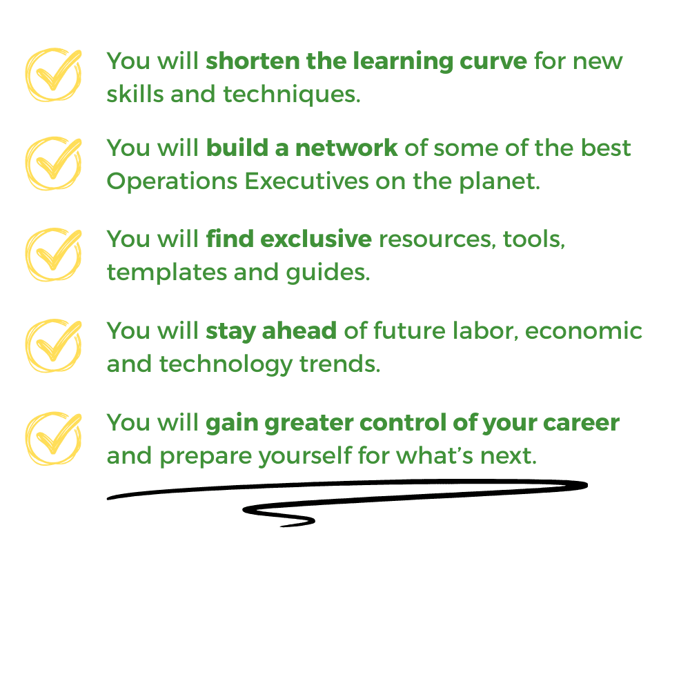 We host monthly discussions and workshops with some of the world's best thought leaders around topics most important to operations executives. Members have access to live virtual, recorded, and online workshop content.