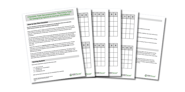 In the AI era, the COO’s value is not just adopting new tools. It is redesigning how work happens so humans and AI each do what they do best. Task deconstruction is the method that makes that possible - turning complexity into clarity and experimentation into operational strength.